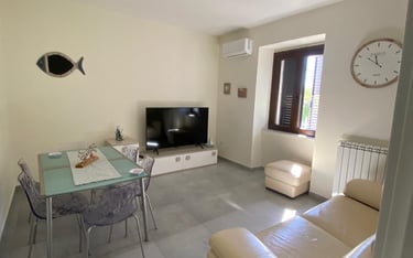 Zona giorno: al piano terra si trova cucina moderna con forno e piano ad induzione (potrete cucinare vista mare!), soggiorno accogliente con grande TV ed un comodo divano, ovviamente non manca un grande tavolo per le vostre cene d'estate.